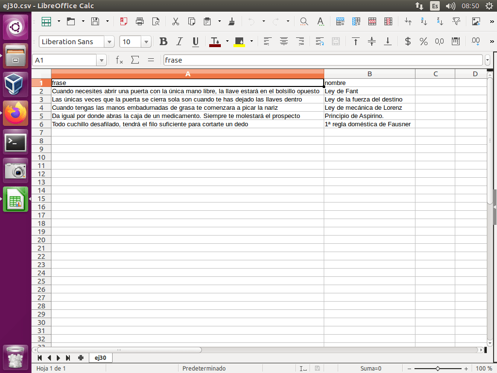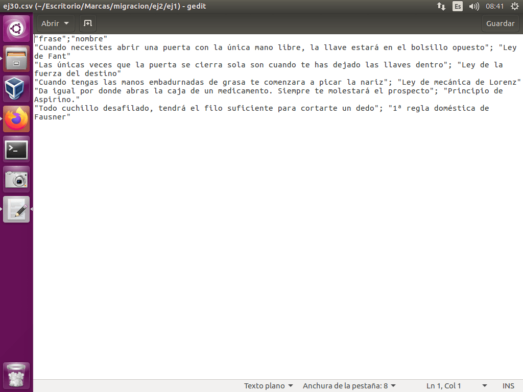 Abrimos el archivo leyes.csv con el editor de texto gedit.
