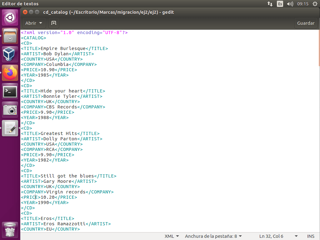 Abrimos el fichero cd_catalog.xml: