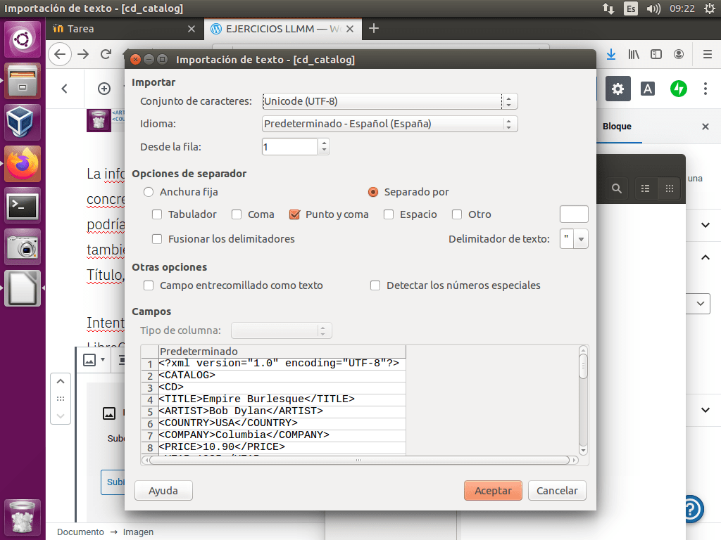 Pero como vemos, no podemos pasar de XML a Calc de esta forma, debido a que ninguna de las opciones de separador serían eficaces con el formato de etiquetas de XML. Tenemos que buscar otra forma.