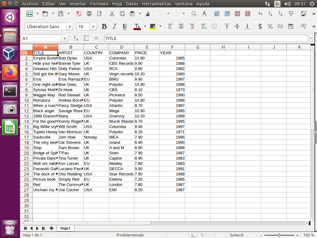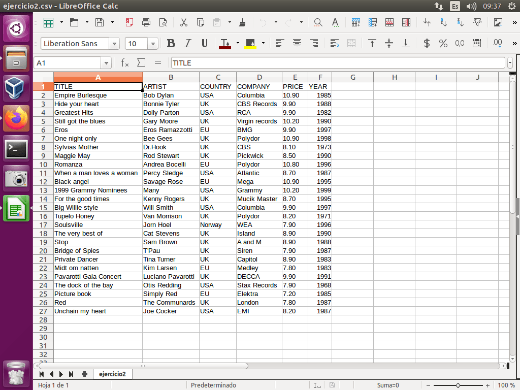 A continuación, abrimos dicho fichero con el programa Hoja de Cálculo preferido, en este caso LibreOffice Calc.